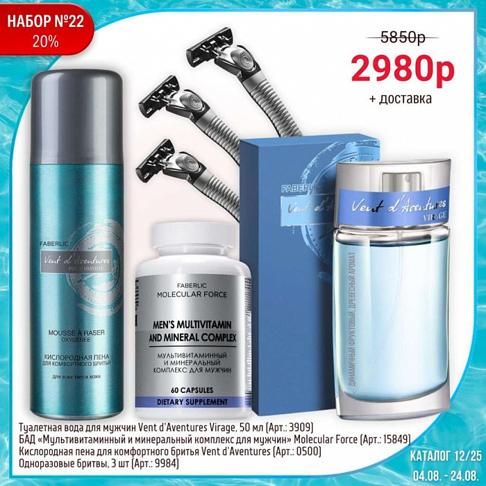 Для оформления заказа, выбирайте понравившийся набор и нажмите кнопку "купить набор", далее выбирайте "Зарегистрироваться и заказать", если это ваш первый заказ в Faberlic или "Войти и заказать", если уже есть кабинет клиента.